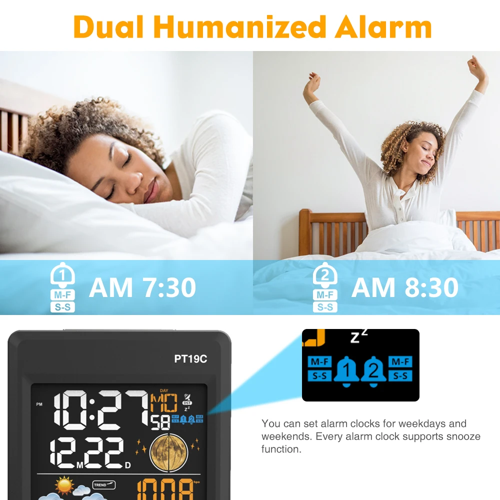 ORIGINAL Three sensors Colorful Display Weather Station Temperature Humidity Sensor With Barometer Weather F