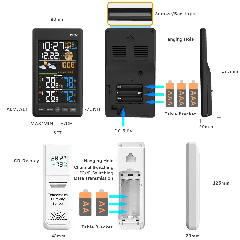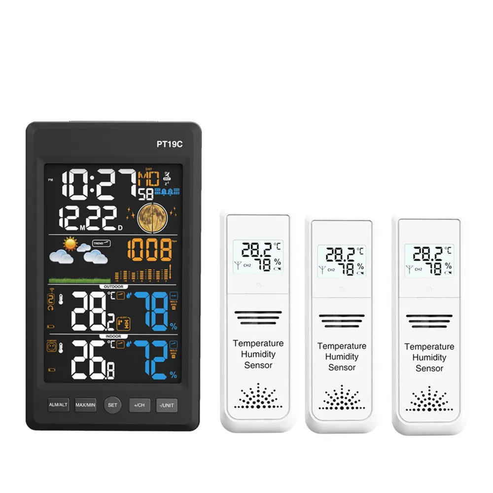 Three sensors Colorful Display Weather Station Temperature Humidity Sensor With Barometer Weather F