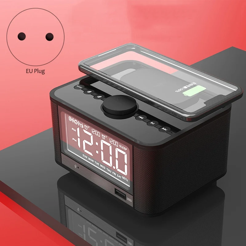 Wireless Charging Alarm Clock Bluetooth Speaker FM Radio with LED Display for IPhone Xs Max XR X/Xs