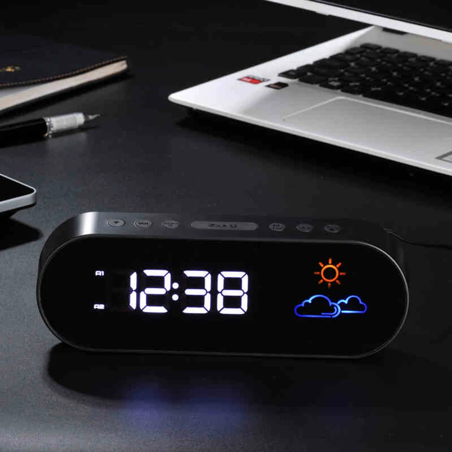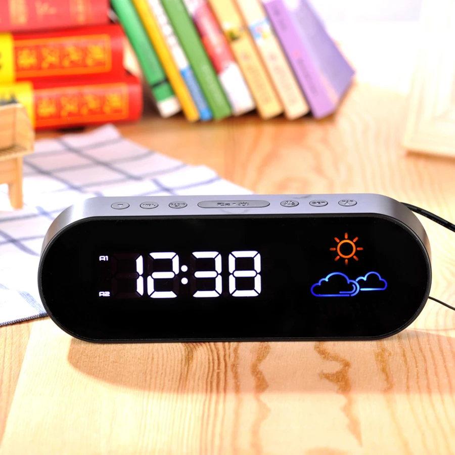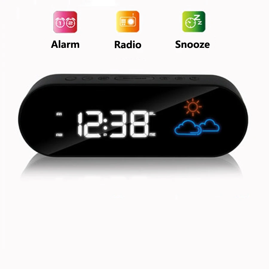 Digital Alarm Clock Radio with Weather Station Colorful LED Screen Table Clock with Snooze Function