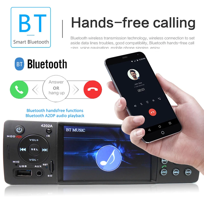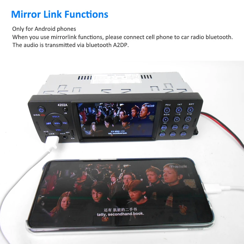 1 Din Car Radio Mirror Link Video MP5 Player Bluetooth Audio A2DP Handsfree USB SD Aux FM 4" Stereo