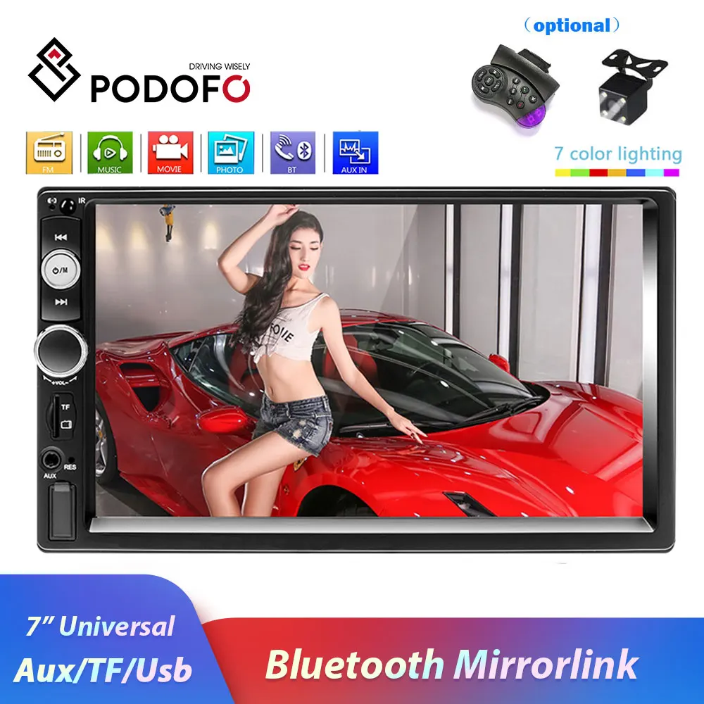 Best Quality Podofo 2 din car radio Bluetooth audio Multimedia Player 7" Digital Display MP5 USB SD FM 2din Ster